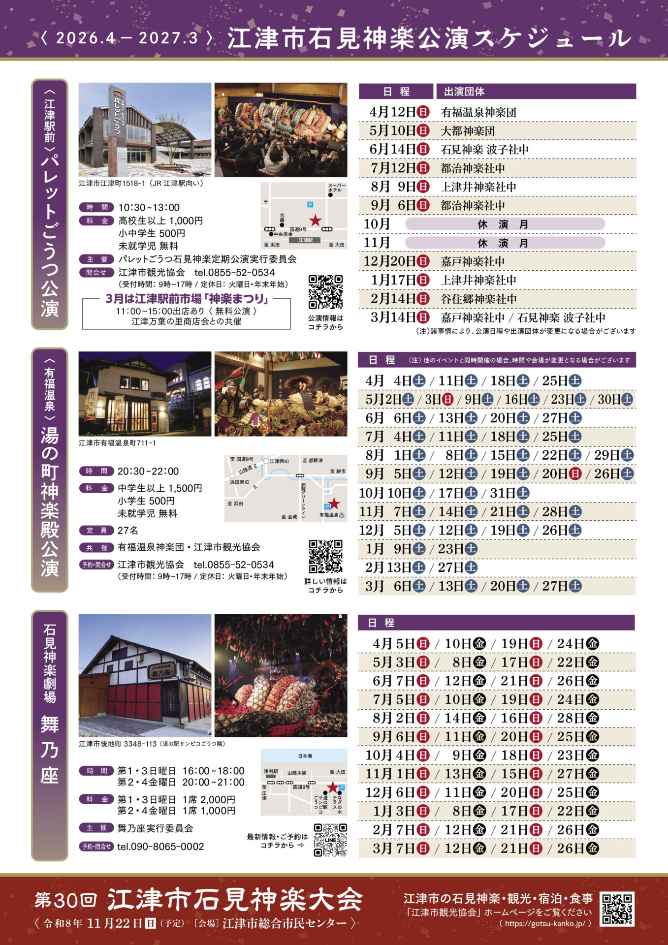 | 場所 | 石見神楽劇場 舞乃座(江津市後地町3348-113) |
