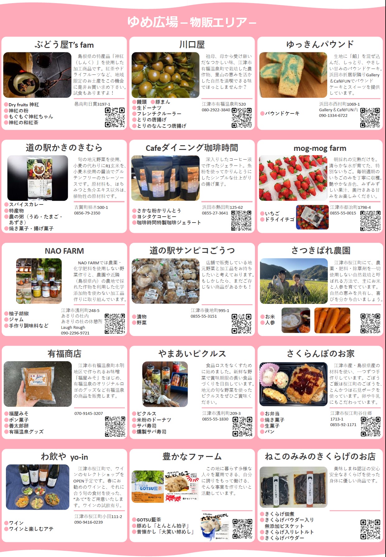 いわみ発見!マルシェ(R8.4.4開催) 2026 3/21 新着情報 イベント情報 体験エリアと物販エリアで県西部の事業所20店が参加するマルシェ 【日時】2026年4月4日(土)10:00~17:00【場所】ゆめタウン江津1階 ゆめ広場・みどりの広場(江津市嘉久志町2306−30)【問合】西部県民センター 石央地域振興課 TEL:0855-29-5511 新着情報 イベント情報 江津市の記事のシェアはこちらから! URLをコピーしました!